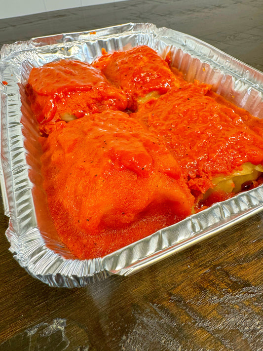 Full line of scratchmade, double stuffed pierogies, Haluski, Stuffed Cabbage and Peppers...