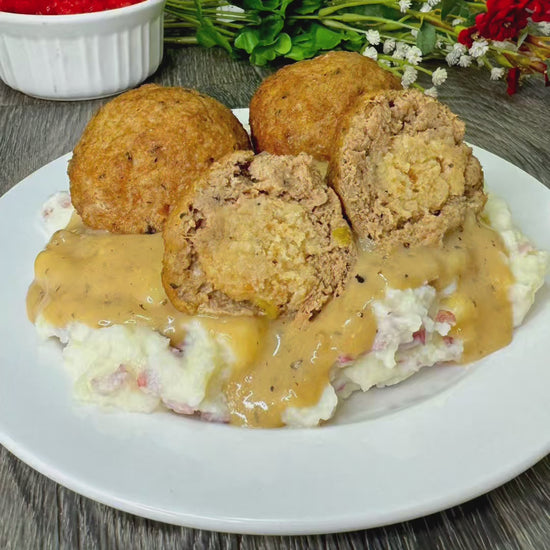 - 4 individual (3oz) gourmet Stuffed Meatballs